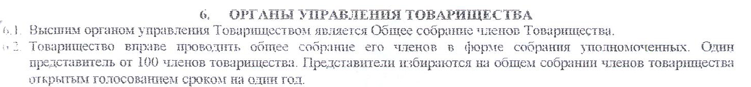 Правление собирается в декабре, включает в состав голосующих на общем собрании 18 человек уполномоченных ..... почему-то - старших по аллеям .Как вы думаете , чтобы голосовать каждому за 100 человек на общем собрании, согласно Устава? Иными словами само правление уже заранее готовит себе предсказуемые результаты голосования на ЛЮБОЙ вопрос общего собрания, да и неважно что назначенные уполномоченные на самом деле не выбраны людьми как представители на общем собрании ? В Уставе нашего СНТ совсем другая информация. Специально выкладываю выдержку из Устава , чтобы было понятно откуда берутся уполномоченные.