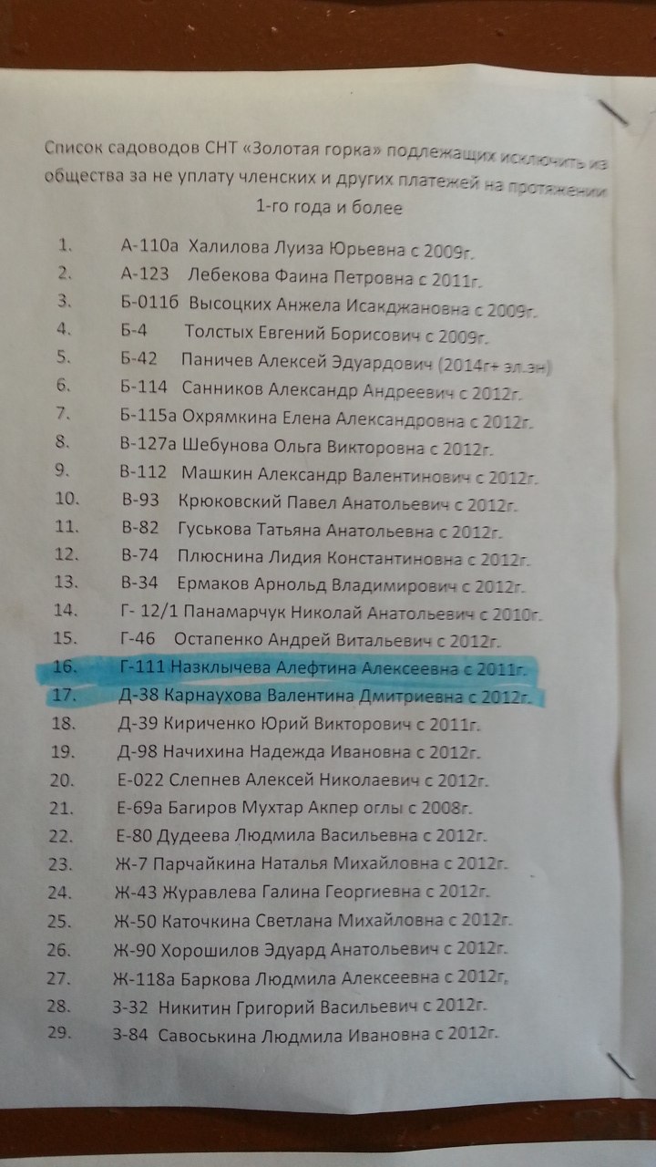 горбуньков с.с писал(а):Да плевать мы хотели на ваше незаконное собрание,собрание в снт проходит в марте, вот там и будем выбирать председателя.